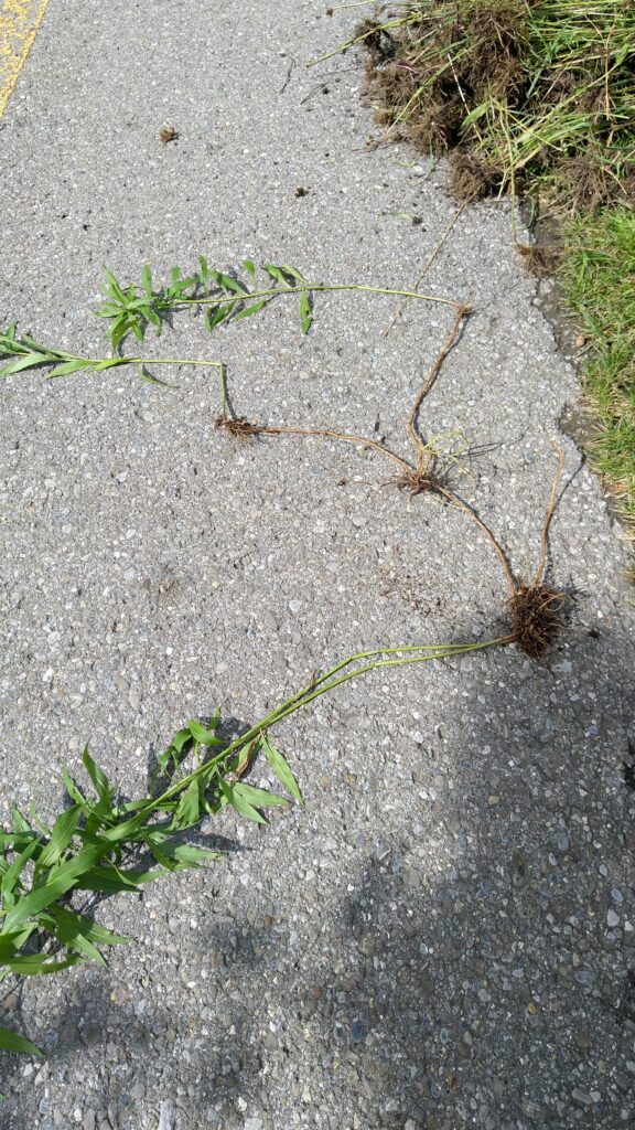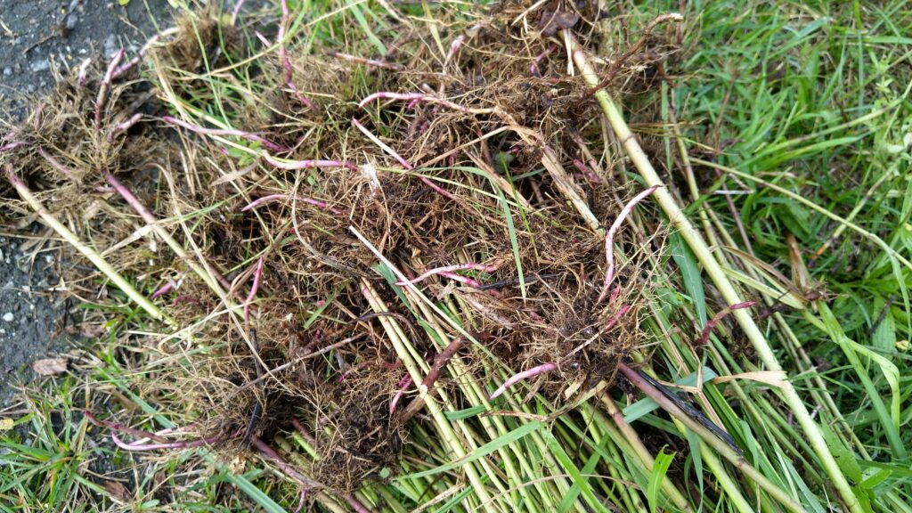 trollen weiterführen.Da ich selbst schon wiederholt als Freiwillige bei den Bekämpfungsmassnahmen an der Ron (siehe Foto oben) teilgenommen habe, kann ich nur feststellen: bei diesen Beständen ist es fast unmöglich, die Rhizome möglichst vollständig zu entfernen. Meist freut man sich schon, wenn man die Wurzel mit erwischt. Statt wie empfohlen im Mai und Juni erfolgen die Aktionen jeweils erst im Juli. Aus meiner Erfahrung gleicht die Bekämpfung somit einer Sisyphos-Arbeit, alle Jahre wieder…Und Freiwillige gibt es immer weniger.